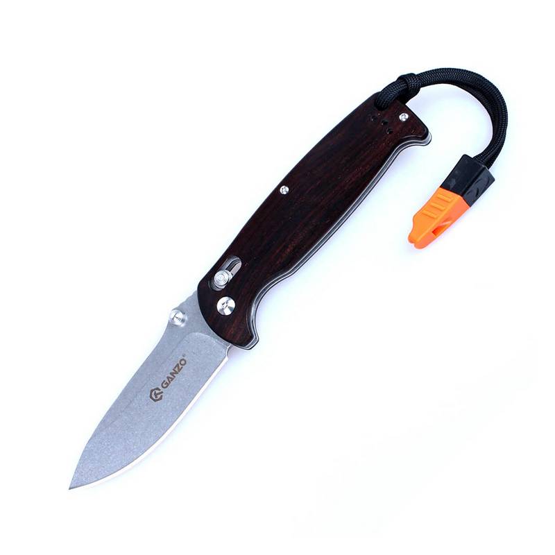 Высокопроизводительный складной нож Ganzo G7412 WD, который пригодится как для домашнего использования, так и для отдыха на природе. Высокопрочное лезвие выполнено в форме Drop Point из высококачественной нержавеющей стали 440C твердостью 58-60 HRC с содержанием углерода до 1,2%, что позволяет ножу дольше оставаться острым. Прямая заточка делает модель универсальной, а отделка методом шлифовки наделяет клинок влагоустойчивыми, антикоррозийными свойствами, а также привлекательным внешним видом. Надежная блокировка G-Lock исключает случайное открытие. Эргономичная рукоять, изготовленная из дерева, обеспечивает стабильный хват, предотвращая соскальзывание и травмирование рук. Кроме этого, она оснащена стальной клипсой и прочным ремешком с сигнальным свистком, что позволит переносить нож различными удобными способами: прикрепив к карману, поясу, к рюкзаку и т. д. Многофункциональная модель, которая, несомненно, привлечет внимание всех, кто ценит практичность, компактность, хорошо продуманный и лаконичный дизайн.