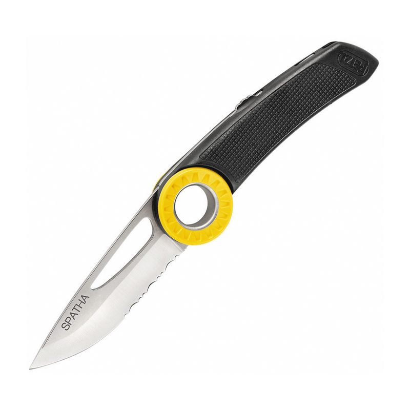 Функциональный складной нож Petzl Spatha A, который идеально подойдет для альпинистов. Высокопрочное лезвие имеет полусеррейторную заточку, благодаря чему ним можно легко разрезать веревку, канат или ремень. Клинок изготовлен из нержавеющей стали, обладающей повышенной влагоустойчивостью, износоустойчивостью, коррозийной стойкостью, а также длительной остротой заточки. У основания модель снабжена отверстием для крепления к карабину. Текстурированное колёсико позволяет легко открывать изделие даже в перчатках, а специальный механизм блокирует лезвие в открытом положении, что повышает безопасность использования. Рукоять эргономичной формы обеспечивает стабильный хват, предотвращая соскальзывание и травмирование рук. Чрезвычайно надежный, долговечный нож, сохраняющий в течение длительного времени свои первоначальные качества и форму.