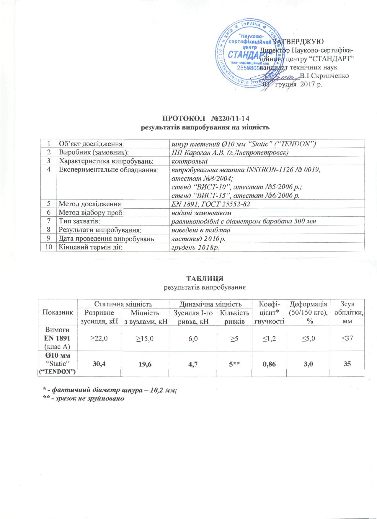 Высокопрочная веревка Tendon Static 10, обладающая низким растяжением и повышенной статической прочностью, которая идеально подойдет, прежде всего, для проведения высотных работ, а также в качестве элемента крепления в безопорном пространстве. Изделие выдерживает разрывную нагрузку 31 kN. Имеет сертификацию CE 1019 и EN 1891. Устойчивая к истиранию и разрыву веревка, надолго сохраняет свои первоначальные свойства и цвет.