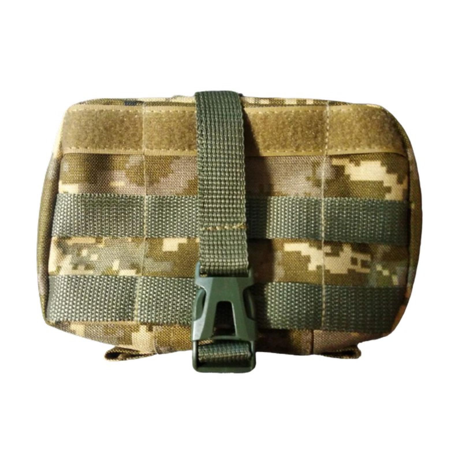 Аптечка Sam самоскид горизонтальна - Медичний підсумок на блискавці з нашитими усередині стропами для кріплення медикаментів та перев'язувальних матеріалів. Виготовлений із щільного та довговічного поліестеру з водовідштовхувальними властивостями. Кріпиться скрізь, де є система MOLLE – на бронежилет, розвантаження, РПС чи пояс. На лицьовій стороні є велкро для патчів та нашивок, і два ряди строп MOLLE. Мінімалізм без втрати функціональності. Без заповнення.